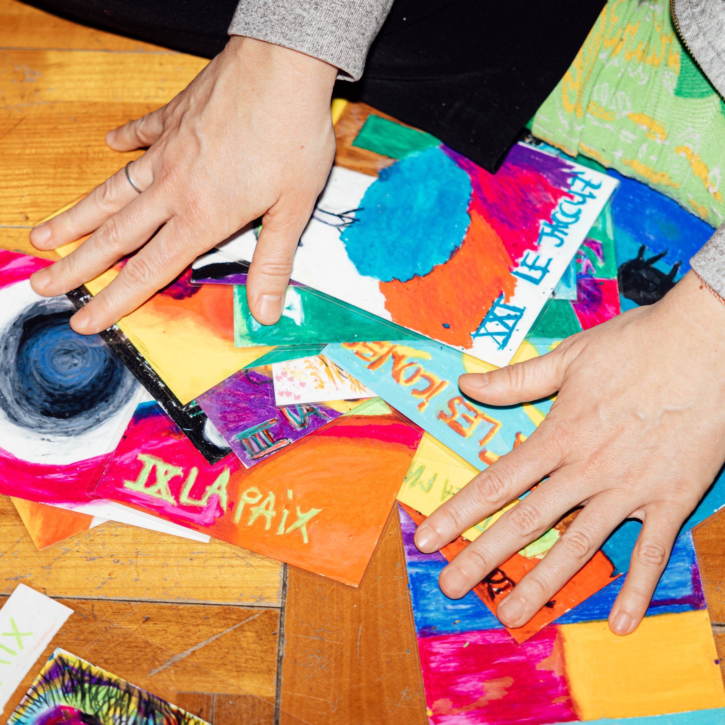Invitez Mevil à votre fête d’anniversaire, mariage ou rave party pour y tenir un stand de lecture de cartes: petites lectures inspirantes individuelles pour les invitéexs d’une quinzaine de minutes.